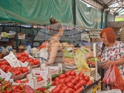 Част от търговците и производителите, изложили своята стока на щандовете в Общинския пазар, също прилагат двойното обозначение. "Хората питат, някои се объркват, но свикват", заяви производител на зеленчуци. Продавачка от сергия за плодове и зеленчуци отбеляза, че в началото е имало лека паника сред хората. По думите й по-възрастните се чувствали объркани и се затруднявали да преценят коя е реалната цена. При по-младите настроенията са били по-различни. "Честно казано ми е трудно, още не мога да свикна. Не ми харесва тази идея да минем на евро", коментира възрастна жена, пазаруваща домати. "Според мен е нормално и полезно", посочи жителка на града пред сергия за чехли.