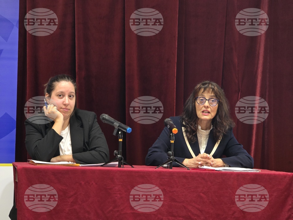 Главният инспектор в КЗП Ралица Кръстева и директорът на плевенския офис на НАП Цветомила Потурлиева по време на срещата в Никопол. Снимка: Кореспондент на БТА в Плевен Юрий Конов