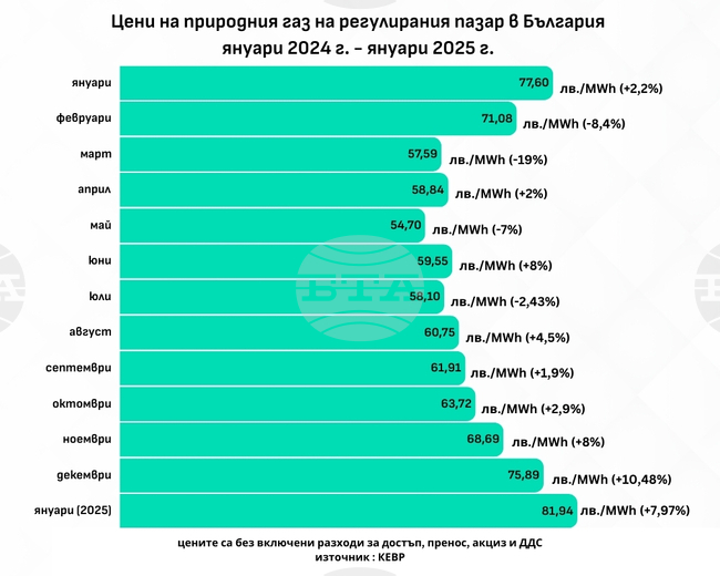 ОБЗОР Природният газ на регулирания пазар в България поскъпна с 5,59 на сто за година, на най-голямата европейска борса - с 33,82 на сто, на "Газов хъб Балкан" - с 58,39 на сто