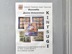 Изложба „Кинцуги“ на художничката Диана Бояджиева е подредена в троянската галерия „Серякова къща“. В експозицията са включени повече от 70 стенни пана и поредица от керамични и стъклени съдове.