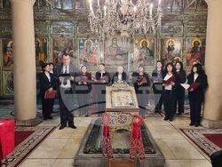 Първото песнопение „Тебе поем“ бе по музика на Добри Христов, последвано от „Нине отпущаещи“ по музика на Архангелский и „Достойно есть“. Публиката чу и песен по стихове на Иван Вазов, посветена на църквицата в манастира „Седемте престола“.