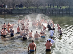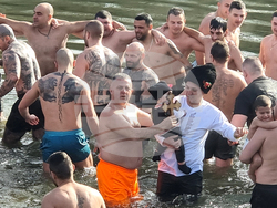 Близо 50 мъже взеха участие в ритуала, който по традиция се състоя при Историческия мост на река Вит, край Плевен. След като кръстът бе изваден от речните води, те извиха ледено мъжко хоро.