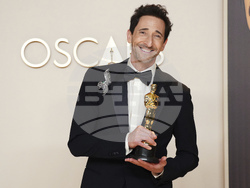 Ейдриън Броуди спечели втория си "Оскар" за най-добър актьор за ролята си на еврейски имигрант - архитект, който преследва американската мечта в "Бруталистът". Първия си "Оскар" 51-годишният актьор получи през 2003 г. за "Пианистът". Тогава той стана най-младият победител в категорията - едва на 29 години и още притежава рекорда.