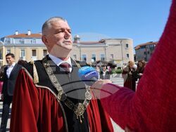 Преди това то бе осветено от Сливенския митрополит Арсений. Той обяви, че гвардейското знаме символизира държавността и ни задължава да пазим символите на нашата нация, да бъдем предани патриоти, верни чада на майка България. "И нека не забравяме завета на патрона на университета проф. д-р Асен Златаров, който казва да имаме любов към историята, любов към труда и любов към истината. Това са думи, които са в пълно съзвучие със словото Божие", каза още владиката.