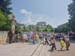 Точно в 12:00 часа вой на сирени огласи и в същото време притаи града. Граждани сведоха глави, автомобилите при близкото кръстовище спяха движението си, в знак на вечна памет и преклонение пред подвига на загиналите за Родината.