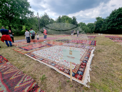 Върху тези 10 декара събрахме точно 965 килима от всички български етнографски области и няколко чуждестранни, каза при откриването собственикът на колекцията Якоб ван Бейлен, който към момента живее във Велико Търново. През миналата година той представи част от своята колекция в Париж.