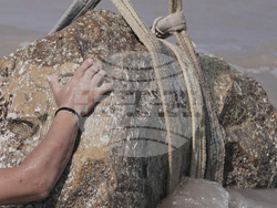Водолазите са използвали въжета, за да привържат четири артефакта към кран, който ги е извадил един по един от калната вода. След това те са били подредени внимателно, за да бъдат показани на церемония в Абукирския залив в Александрия.
