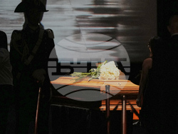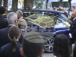 Тялото на модния дизайнер, починал в четвъртък на 91-годишна възраст, е изложено в ковчег от светло дърво, украсен с букет от бели рози, преди погребението, насрочено за понеделник. Впечатляващи венци от рози бяха поставени на входа на залата, където се намира ковчегът, в края на коридор с колони от необработен бетон.