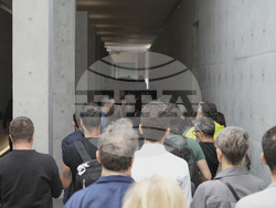 На преден план, облечени в тъмни костюми и с черни очила, стотици служители на групата дойдоха да подпишат книгите за съболезнования.