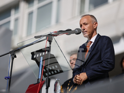 В приветствието си министърът на образованието и науката Красимир Вълчев подчерта, че началото на всяка академична година е сред най-празничните дни, защото е наситено с вяра, надежда и оптимизъм за бъдещето. „Вярата в нашите деца, надеждата, че чрез образованието ще живеем в по-добър свят, и оптимизмът, който то носи, превръщат този ден в истински празник“, посочи той. Министърът пожела на студентите да бъдат вдъхновени и мотивирани, да учат всекидневно и целеустремено, защото именно постоянството е истинското учене. Той акцентира и върху мисията на университета – да продължи възпитателната роля на българското училище.