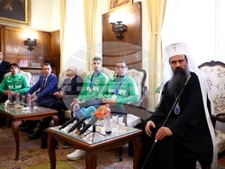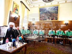 Българският патриарх и Софийски митрополит Даниил се срещна днес в сградата на Светия синод с мъжкия национален отбор по волейбол и треньорския щаб. С тях беше и министърът на спорта Иван Пешев.