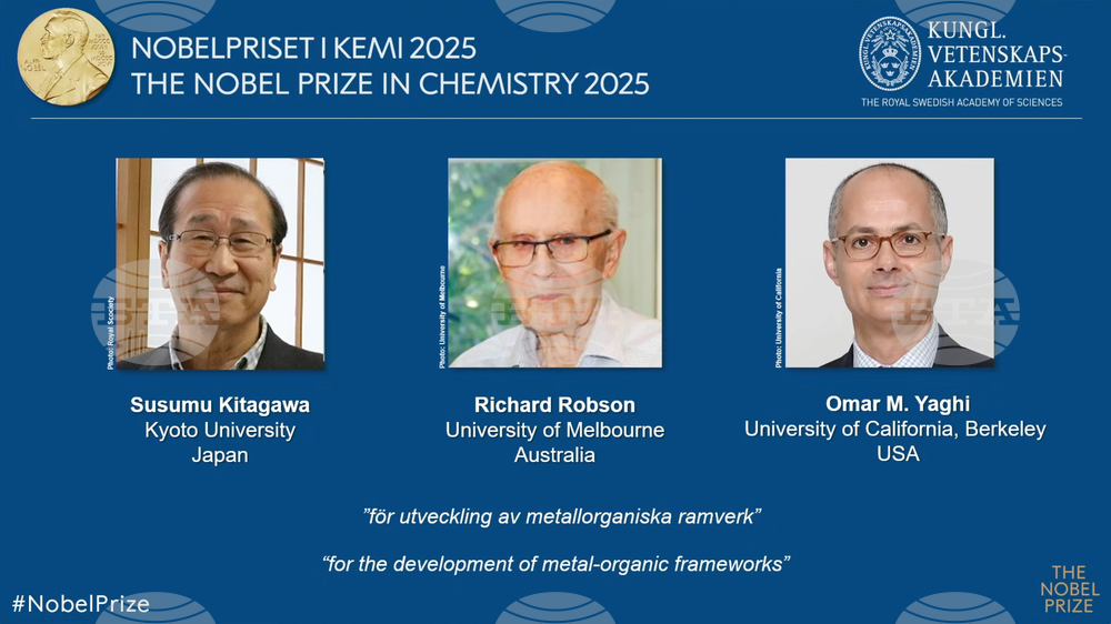 Кралската шведска академия на науките взе решение да присъди престижното отличие на тримата учени за "разработването на метало-органични рамки".