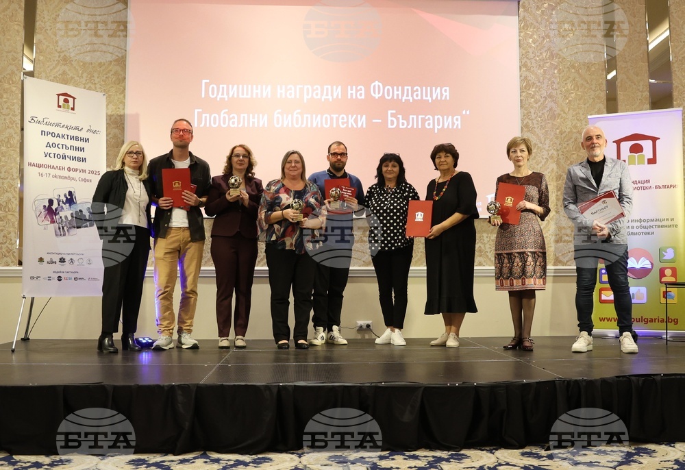 Наградите на фондация „Глобални библиотеки – България“ (ФГББ) бяха връчени тази вечер в София. Те се присъждат всяка година на конкурсен принцип в следните категории – за медии (национална и регионална), за спомоществовател и за публична институция.