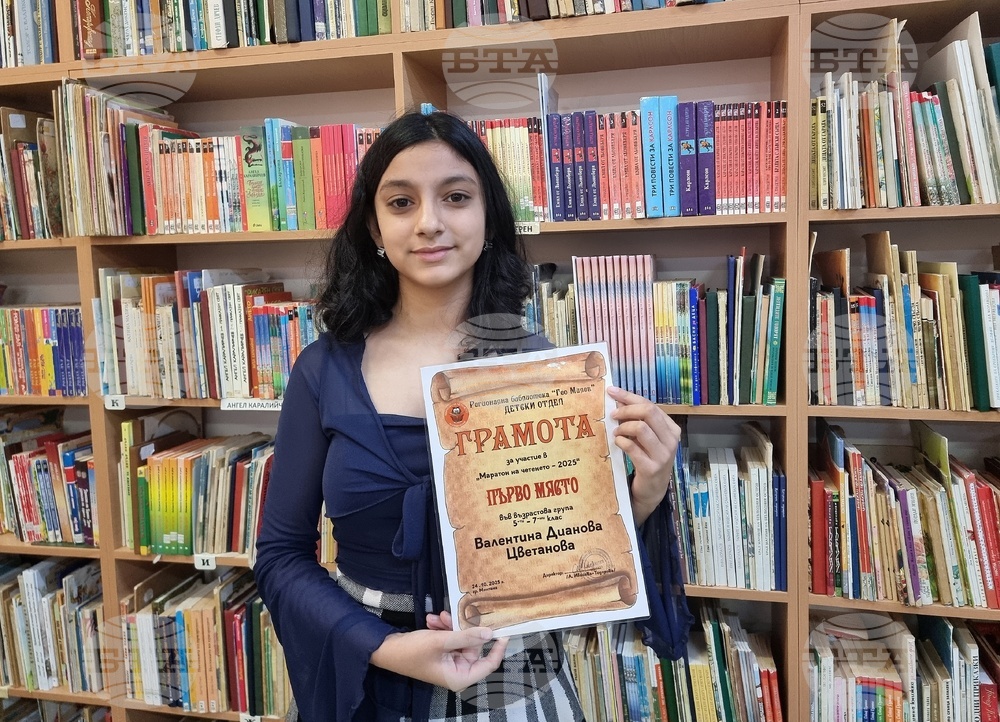 Валентина Цветанова от шести клас на Първо Основно училище „Св. св. Кирил и Методий“ в Монтана е победител в тазгодишния маратон на четенето, организиран от Регионална библиотека „Гео Милев“ в Монтана, съобщи директорът й Анелия Иванова-Тодорова.