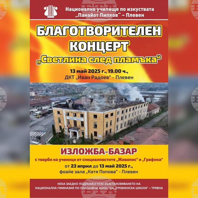 В Плевен организират изложба и благотворителен концерт в подкрепа на Националната гимназия по приложни изкуства в Трявна