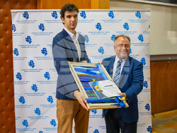 Вие сте най-добрата реклама на нашия университет и съм горд, че имам удоволствието да работим заедно, обърна се към младите хора ректорът на университета проф. д-р Драгомир Пламенов. За първи път ректорът връчи специална награда, учредена от него, за „Най-активен студент за 2024 г.“. Призът е за третокурсника Виктор Иванов от специалност Изкуствен интелект, за изключителната му активност и постижения в академичния живот на университета и участието му в национални студентски инициативи и проекти. Той получи красив авторски витраж и покриване на една семестриална такса.