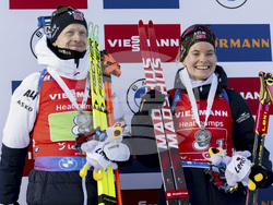 На второ място е Норвегия със звездата на световния биатлон Йоханес Тингнес Бьо и Рагнхилд Фемстейневик с пасив от 5.7 секунди и 15 допълнителни патрона, а на трето се нареди Германия в състав Франциска Пройс и Юстус Щрелов на 8.3 секунди и 4 допълнителни патрона. Двата тима не влязоха в наказателна обиколка.