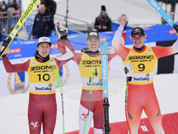 Швейцарецът Лоик Меяр, трети за годината в Световната купа, остана на 17-о място в класирането пред ветерана Кристоф Инерхофер от Италия. Последен завърши американецът Джаред Голдберг с пасив от 4.30 секунди.