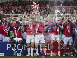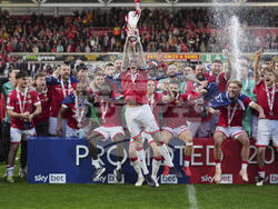 Сам Смит отбеляза два гола, след като Оли Ратбоун откри резултата, за да изпрати "червените дракони" до Чемпиъншип (второ ниво) през следващия сезон пред ликуваща публика, която включваше Рейнолдс и Макелхени. Те са първият отбор, който постига три последователни промоции в първите пет нива на английския футбол.