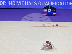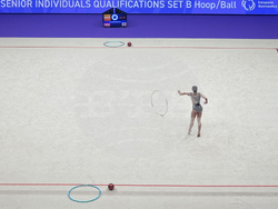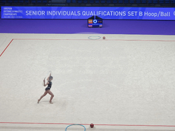 Възпитаничката на Валентина Иванова Стилияна Николова оглави квалификацията за индивидуалния многобой с 57.950 точки (29.600 на обръч и 28.350 на топка). Тя е с първи по сила резултат на топка и втори на обръч след първите два потока.