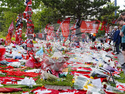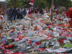 На стадион "Анфийлд" в Ливърпул, където бе изграден временен храм, хиляди оставиха цветя, тениски, шалове и картички.