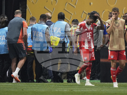 Футболисти от двата отбора образуваха кръг около Джамал Мусиала, който беше изнесен от терена на носилка.