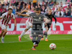 Щутгарт се наложи с 2:1 при гостуването си на Кьолн в двубой от петия кръг на германския футболен шампионат. След втората си поредна победа в Бундеслигата и трета в последните си четири мача Щутгарт излезе на пето място във временното класиране с 9 точки, колкото има и четвъртият Айнтрахт Франкуфрт.