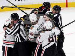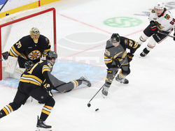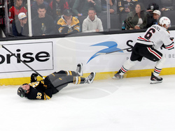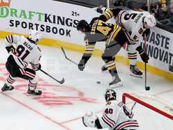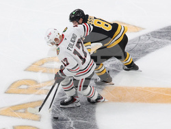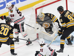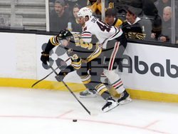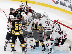 Фрейзър Минтен бе точен 2:12 минути след старта на продължението и Бостън Брюинс надигра с 4:3 гостуващия Чикаго Блекхоукс. Кейси Мителстад, Танър Жано и Елиас Линдхолм също се разписаха за "мечоците", а Йонас Корписало завърши с 21 спасявания. Бостън пък изравни все още активния рекорд на Торонто Мейпъл Лийфс от 10 поредни победи в първи домакинства за нов сезон.