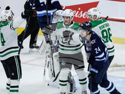 Мико Рантанен записа гол и две асистенции за тима от Тексас, а Джейсън Робъртсън, Нилс Лундквист, Тайлър Сегин и Уайът Джонсън отбелязаха другите попадения за победата. Джейк Отингер спря 21 удара на вратата на Далас, а освен Конър той бе преодолян и от Морган Барън. Марк Шайфел завърши двубоя с три асистенции за Уинипег, за който 32 шайби отрази Конър Хелебок.