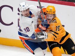 Джъстин Бразо заби победната шайба 5:39 минути преди финалната сирена и Питсбърг Пенгуинс надви с 4:3 Ню Йорк Айлъндърс, за да развали дебютния мач на първия избор в драфта Матю Шефер.