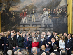 При всяко встъпване в длъжност на президенти на САЩ обикновено тоалетите на първата дама се коментират оживено. Мелания Тръмп не изневери на традицията и се появи вчера на церемонията със стилен тоалет в тъмносин цвят, дефиниран от модните експерти като военноморско синьо, съчетан с шапка с огромна периферия, която се превърна в първо препятствие пред Доналд Тръмп и неговите амбиции като президент на САЩ. Заради периферията Тръмп не успя да целуне първата дама и двамата с Мелания размениха нещо като хладна въздушна целувка. Периферията на шапката постоянно криеше и погледа на Мелания, така че нейните реакции на най-бомбастичните изявления на Тръмп останаха неизвестни за множеството и за журналистите