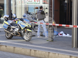 Репортер на ДПА на мястото на събитието предаде, че на земята лежи човек, покрит с платнище.
