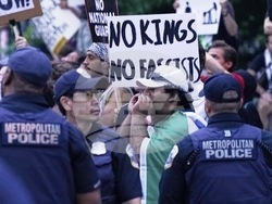 Анти-Тръмп групи планираха близо 2000 демонстрации в цялата страна, които да съвпаднат по време с парада, посочва Ройтерс. Много от тях се състояха под мотото "Не на кралете" и на фона на скандирания, че никой не е над закона. Хиляди хора от всички възрасти се събраха в и около парка "Брайънт" в центъра на Манхатън, като мнозина от тях носеха саморъчно изработени плакати с мотото "Не на кралете".