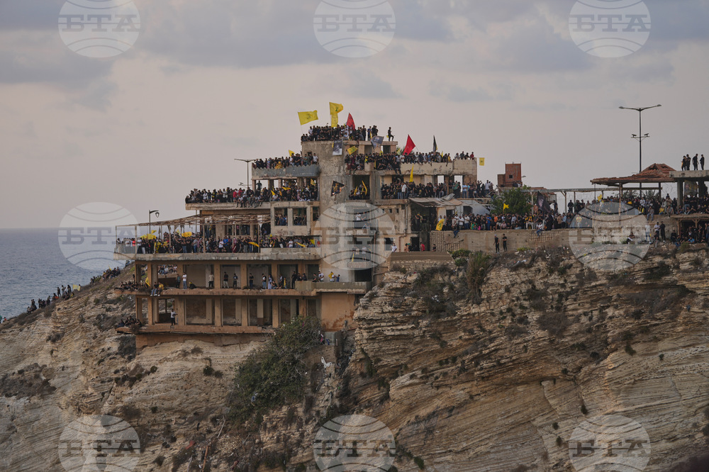 Поддръжници на "Хизбула" са се събрали зна знакова сграда, за да отбележат годишнината от смъртта на покойния лидер на "Хизбула" Хасан Настралла в Бейрут, 25 септември 2025 г. Снимка: AP Photo/Hussein Malla