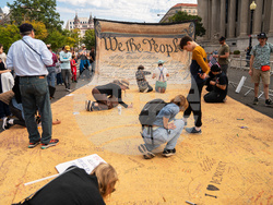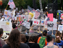 "Президентът смята, че управлението му е абсолютно, но в Америка нямаме крале", заявяват протестиращите.