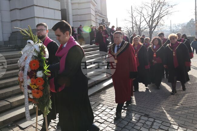Ректорът на Софийския университет и Академичният съвет поднесоха венец пред паметника на св. Климент Охридски за патронния празник на СУ