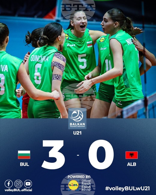 Националният тим на България по волейбол за жени под 21 години победи Албания и завърши на второ място на Балканиадата