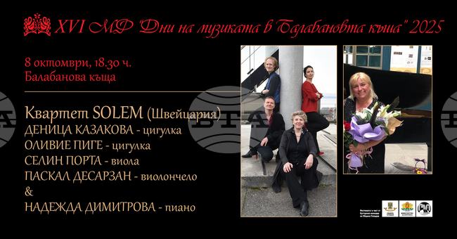 Швейцарски струнен квартет и солисти от "Моцартеум" в Залцбург участват във фестивала „Дни на музиката в Балабановата къща“ в Пловдив