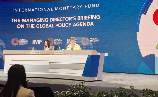 По време на годишните срещи на МВФ и Световната банка Кристалина Георгиева препоръча централните банки да не намаляват лихвите твърде рано или твърде късно