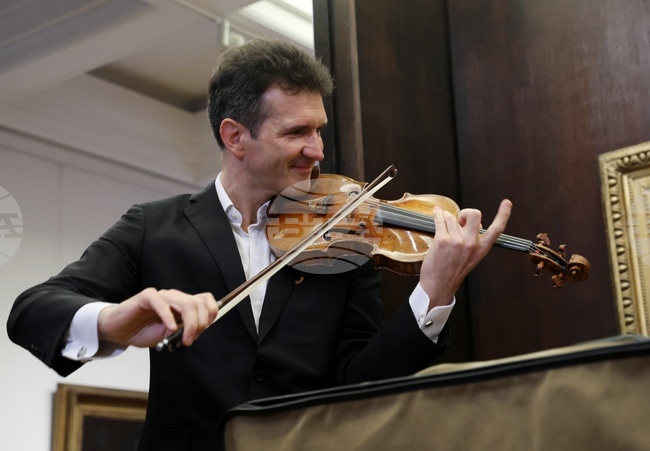 Световноизвестният цигулар Светлин Русев получи плакет с герба на София от кмета Васил Терзиев преди концерта си в столицата тази вечер