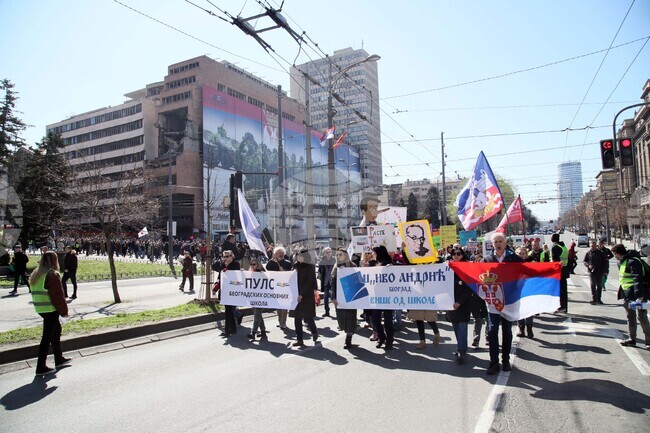 Учители, родители и ученици обърнаха гръб на сградата на Министерството на образованието в Сърбия в знак на протест