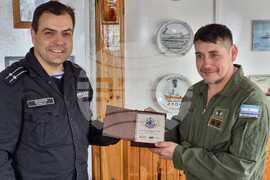 Commander Danailov thanked the base staff for their hospitality and respect. The Captain also presented their host with a plaque of the N. Y. Vaptsarov Naval Academy in Varna as a symbol of the good cooperation between the polar programmes of Bulgaria and Argentina, while the doctor of the RSV 421 delighted the Argentine polar explorers with homemade Bulgarian honey and several traditional types of dried meat.