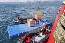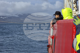 Deception Island, February 20 - The Bulgarian military research/survey vessel Sv. Sv. Kiril i Metodii (RSV 421), supporting the 31st Bulgarian Antarctic Expedition, anchored in the inner bay of Deception Island at 08:00 local time on February 20 and headed back to the St. Kliment Ohridski Bulgarian polar base on the neighbouring Livingston Island. This is the second voyage to Deception Island that RSV 421 has made in just a few days to unload the remainder of the resources for the Gabriel de Castilla Spanish Antarctic Station.