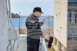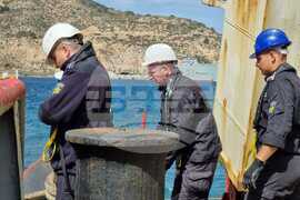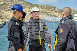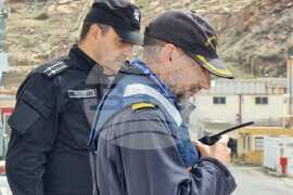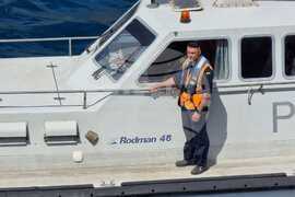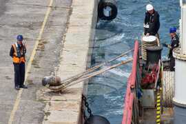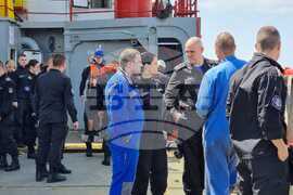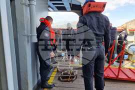 The ship was escorted by a cutter until she left the port as a local harbour pilot was temporarily on board to help the crew get the vessel out to sea safely.