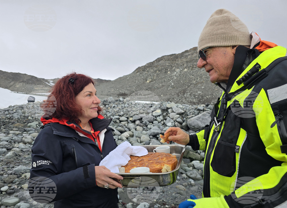 Antarctica (9 February 2025) The fifth group of the 33rd Bulgarian Antarctic Expedition arrived at the St. Kliment Ohridski Bulgarian Antarctic Base on Livingston Island. Pictured: Sofia University Rector Georgi Valchev and the musician and music editor of the Bulgarian National Radio's Horizont programme Marina Velikova