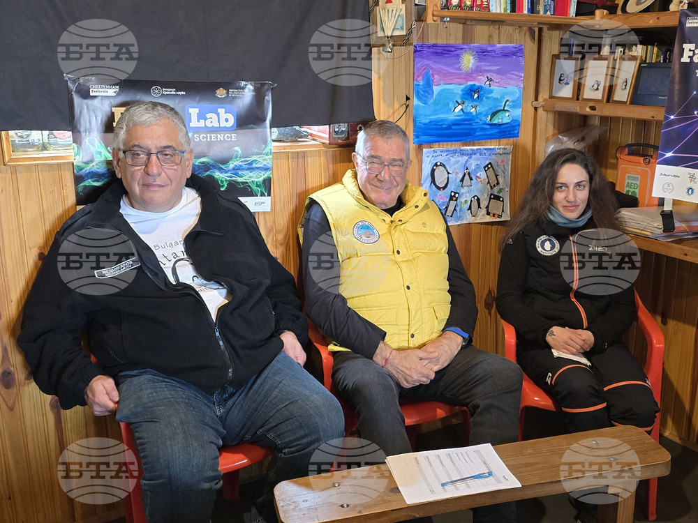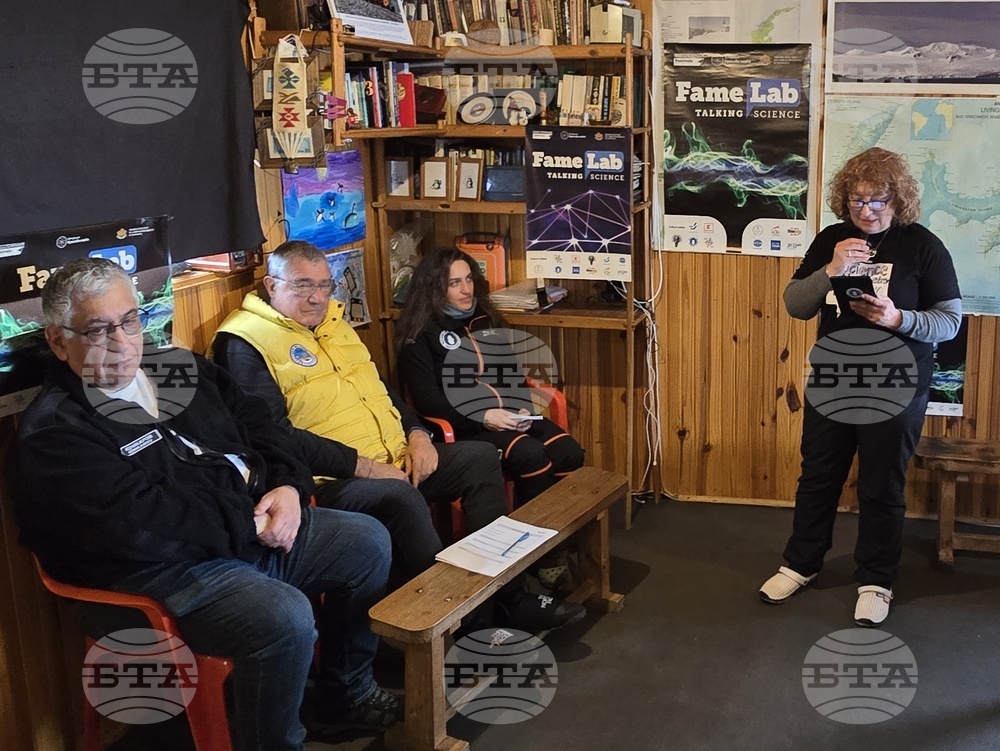 Livingston Island (February 12, 2025) There are four finalists in the second of five selection rounds of the world's largest science communication competition FameLab. The second round took place today at Bulgaria's St Kliment Ohridski Antarctic Base. Pictured (left to right): Stefan Kurkchiev, curator at the Museum of Natural History in Plovdiv, BTA journalist Milena Ostrovska, Tsvetan Parov, PhD student at the Space Research and Technology Institute at BAS, Sevdalina Mihaylova, anaesthesiologist-resuscitator at the Pirogov Emergency Hospital, prof. Christo Pimpirev, Chairmain of the Bulgarian Antarctic Institute, geomorphologist Daniela Pascal of Horia Hulubei National Institute for Research and Development in Physics and Nuclear Engineering in Bucharest , Petar Sapundzhiev from the National Institute of Geophysics, Geodesy and Geography at BAS, Ivaylo Nachev, Doctor in Technical Sciences, lecturer at Technical University Sofia, Fleet Admiral, Prof. Dr of Military Science Boyan Mednikarov.