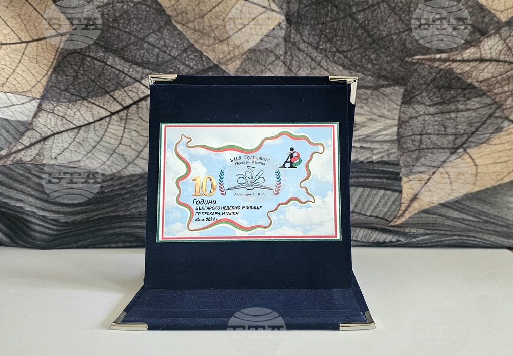 The team of the Bulgarian Media and Communities Worldwide directorate at the Bulgarian News Agency (BTA) was awarded a plaque on the occasion of the 10th anniversary of the Bulgarian Sunday School BulgarinA in Pescara, Italy. The award was presented to journalist Iva Vatashka on November 9 in Sofia during the official opening of the third seminar meeting of the leaders of folklore groups abroad, organized by the Association of Bulgarian Folklore Clubs Abroad (ABFCA).