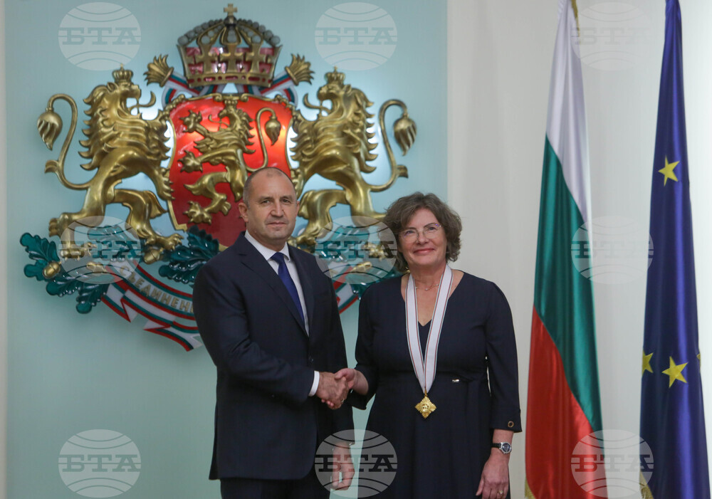 President Rumen Radev on Monday presented the Order of the Madara Horseman, First Class, to outgoing French Ambassador to Bulgaria Florence Robine for her great contribution to strengthening and promoting relations between the two countries.