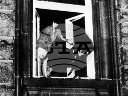 Sofia, August 27, 1990 (BTA) Several hundred extremely agitated citizens attacked the building of the Supreme Council of the Bulgarian Socialist Party (the Party House) in the centre of Sofia last night, smashed the first-floor windows, broke down the doors, and set it on fire, which quickly engulfed the entire building. The attackers threw furniture and documents out of the windows and set them on fire in the square. Some of them carried legs of ham and sausages out of the building and claimed that it was full of other scarce goods.